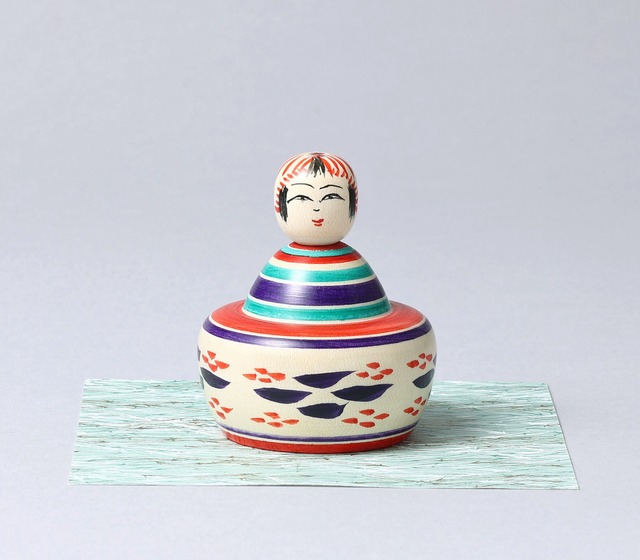 岩手県花巻市の佐藤忠雄工人から、首がゆらゆらと揺れるえじここけしが届きました。 数年前にご病気を患われた後、最近は少しずつこけしの製作をされている佐藤工人。 底にろくろの差し込み後をつけないように木地を挽く技量は全く衰えていません。 制作:佐藤忠雄(花巻市) ・高さ:約6.7cm ・直径:頭約2cm、胴約5.7cm ・重さ:約56.5g ・仕上げ:蝋仕上げ ※こけしの顔や模様は水性染料で描かれているため、たいへん水に弱いです。色落ちを避けるためにも、お掃除の際は乾いた布で拭いてあげてください。 ※こけし本体は木でできています。急な乾燥や直射日光、エアコンなどの暖房器具の近くを避けてお楽しみください。また、あまり湿気の多い場所ですとカビが生えることがありますのでご注意ください。 作者略歴:佐藤忠雄(花巻市) 1939年生まれ 1955年より木地修行を始める 1965年よりこけしを製作している 師匠は佐藤英吉