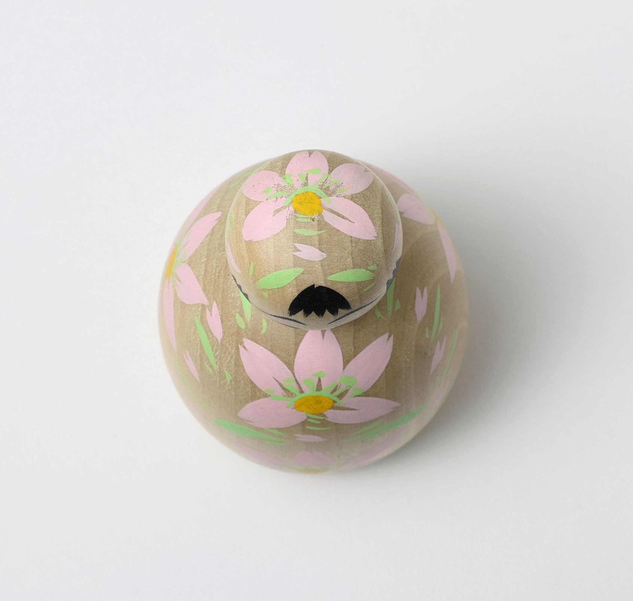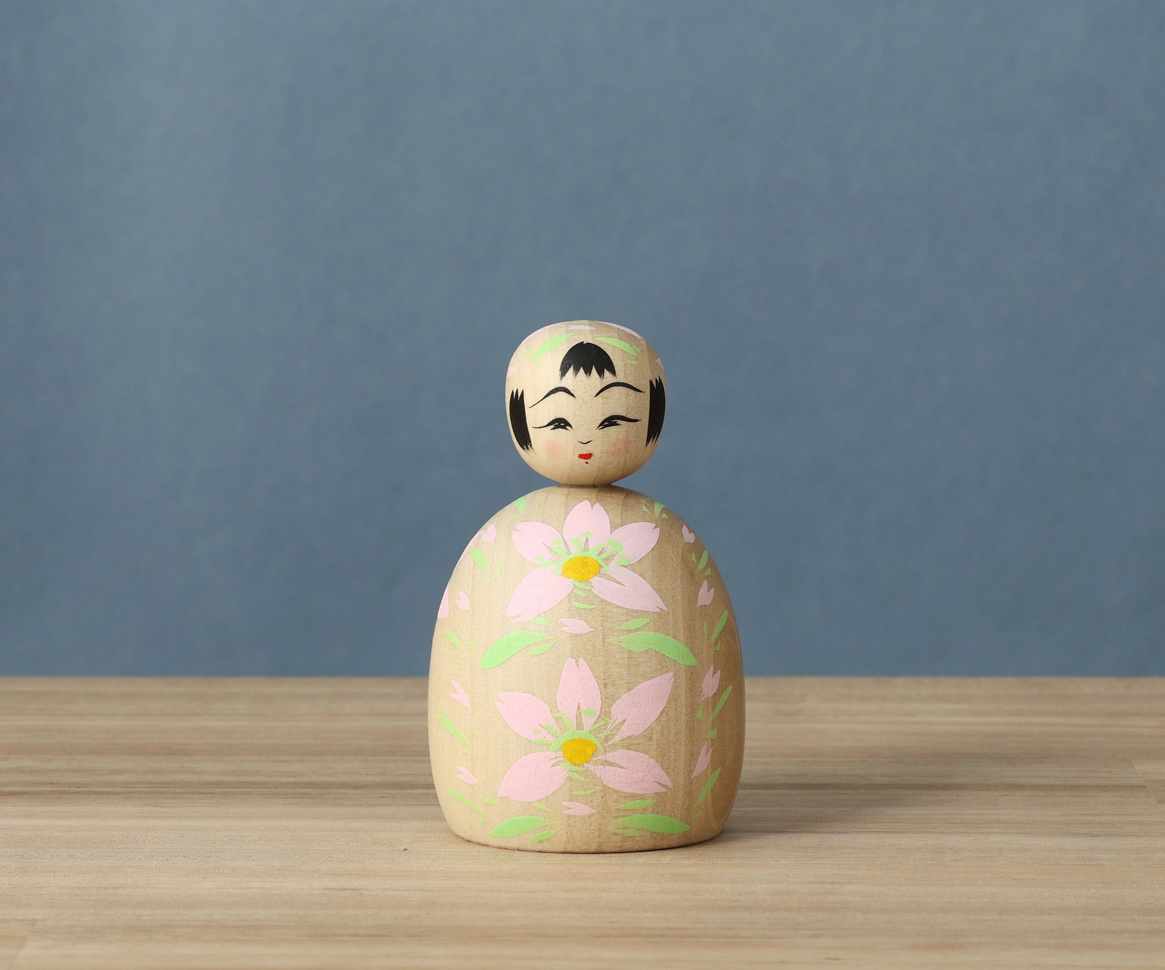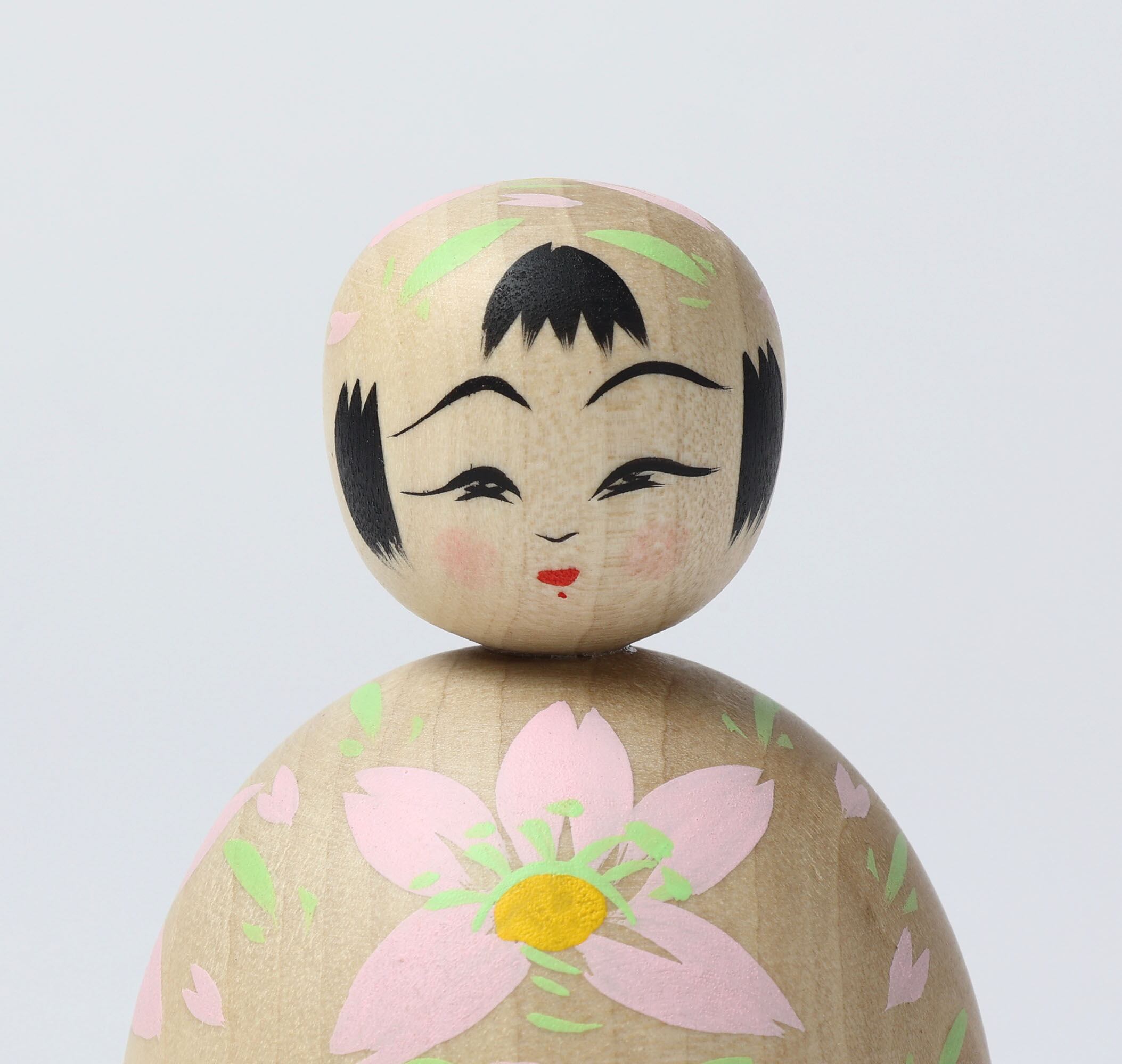 桜模様のえじここけし Sakura-cherry blossom ejiko kokeshi doll | 平賀輝幸工人 作並系 Teruyuki HIRAGA (1972-), Sakunami style | 10cm in height