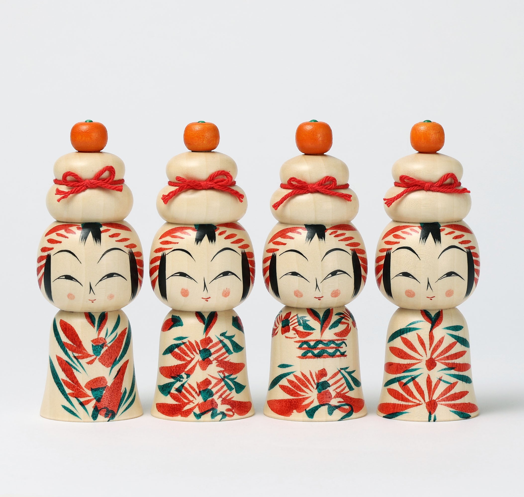 胴に描かれた鮮やかな遠刈田系こけしの伝統模様が、お正月気分を盛り上げてくれます。