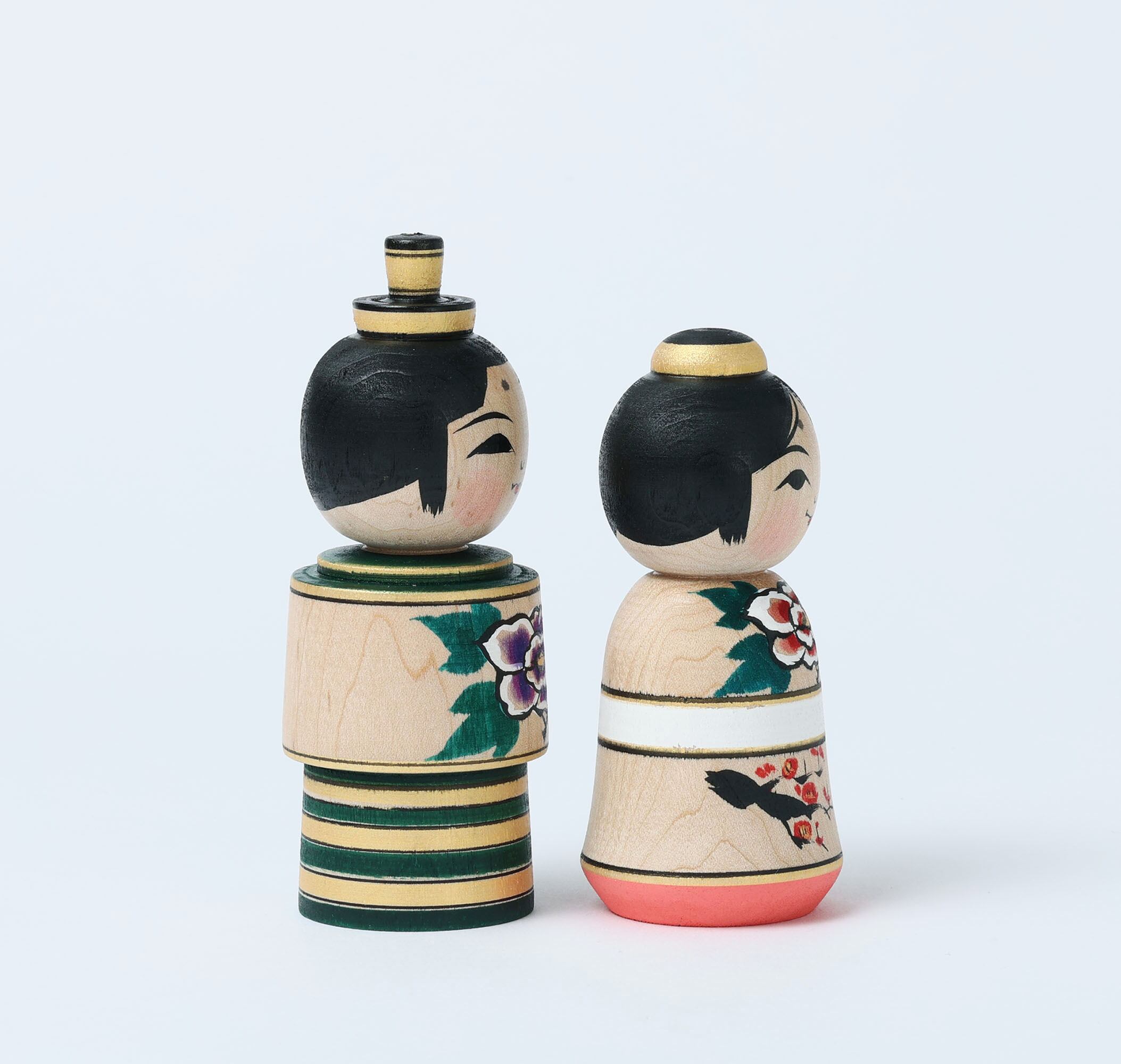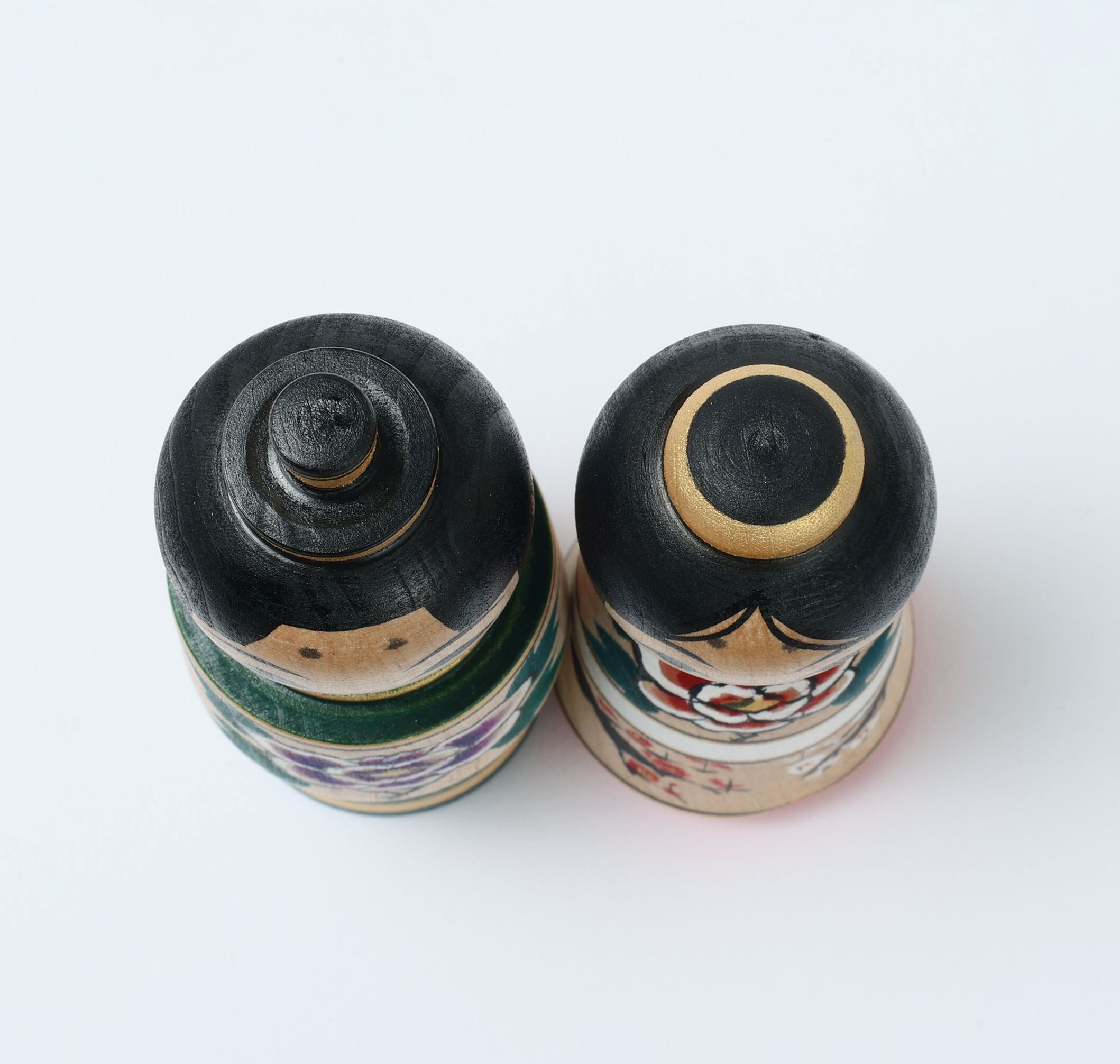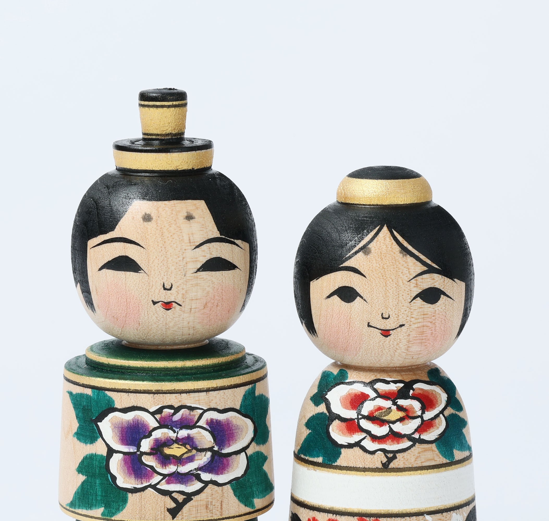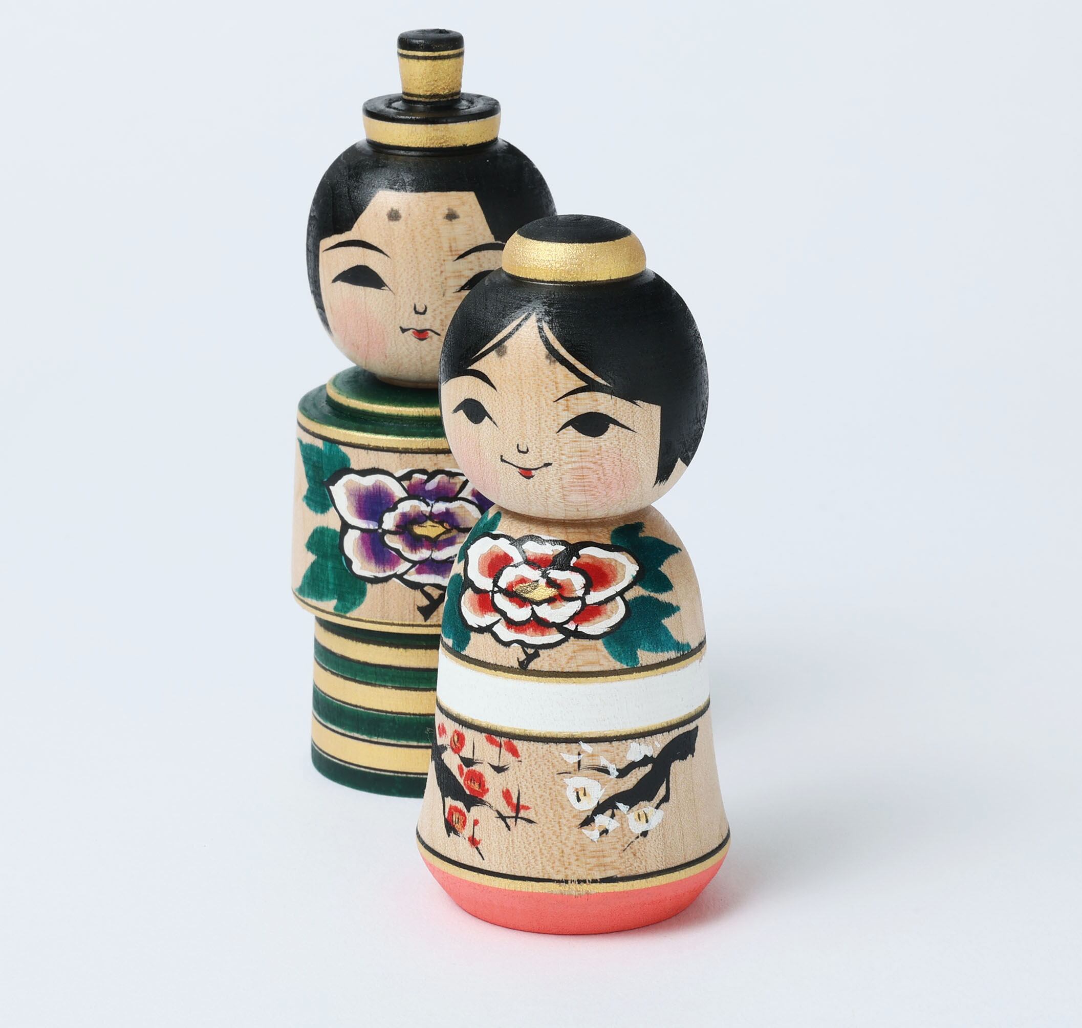 津軽系こけし阿保正文工人から届いた雛こけしです。津軽系伝統こけしの牡丹模様や梅の花が描かれた、小柄ながら雅な明るさのお雛こけしです。