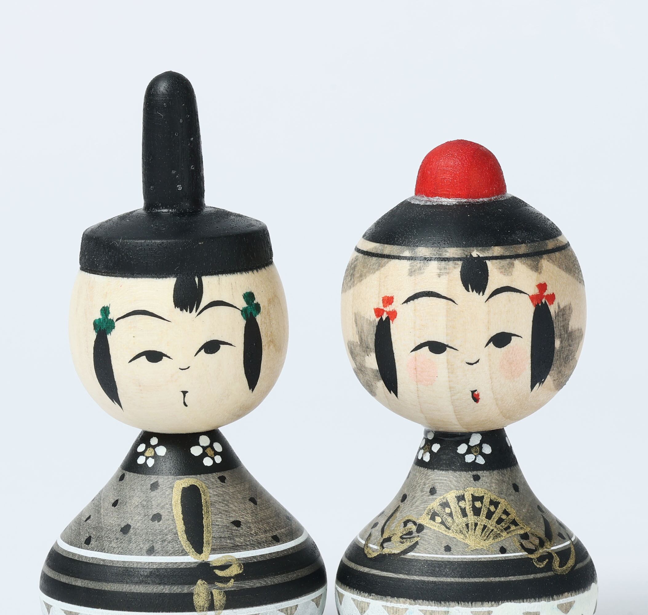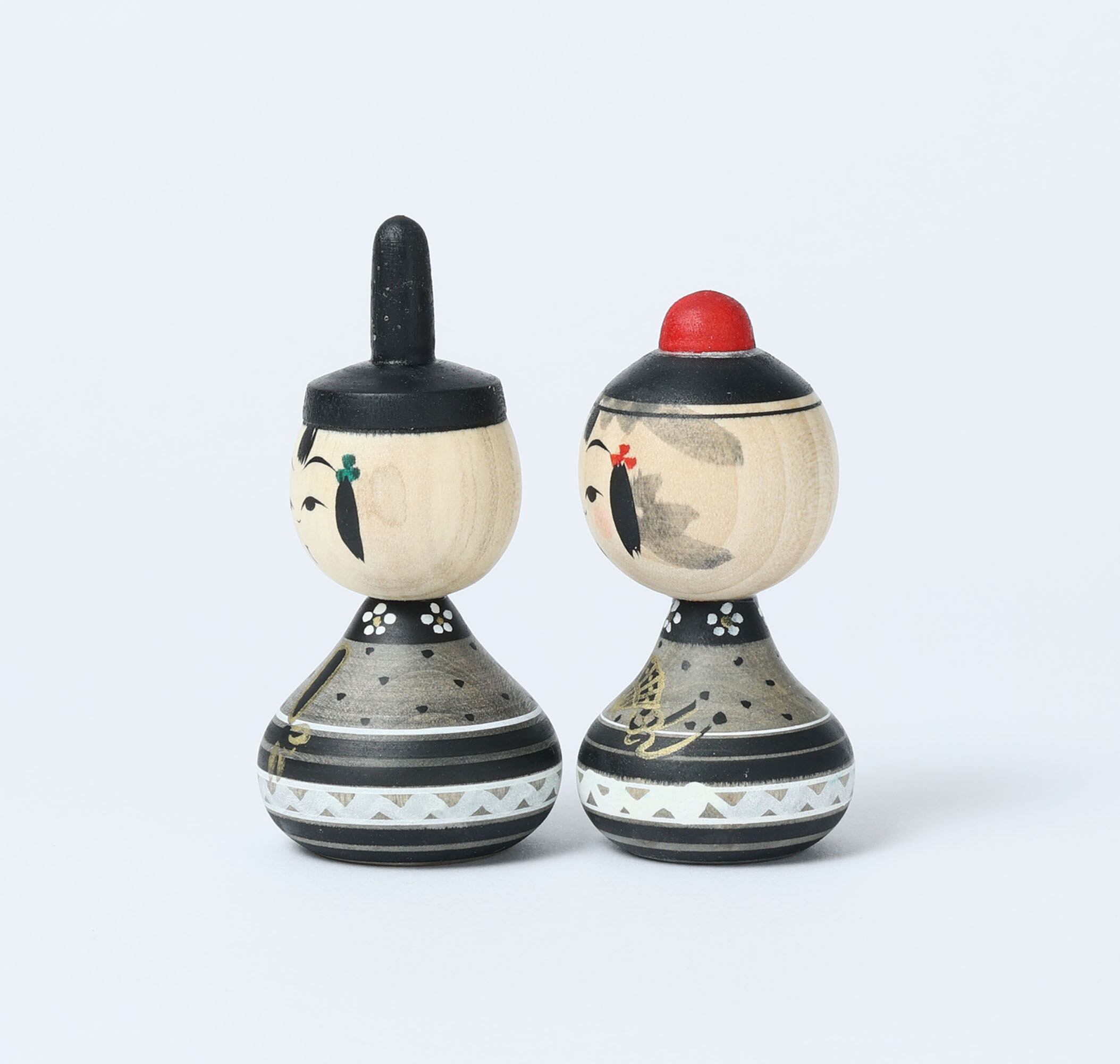 2026年はモノトーンや寒色系など、シックな色合いの着物は現代の家にも飾りやすいお雛こけし達です。