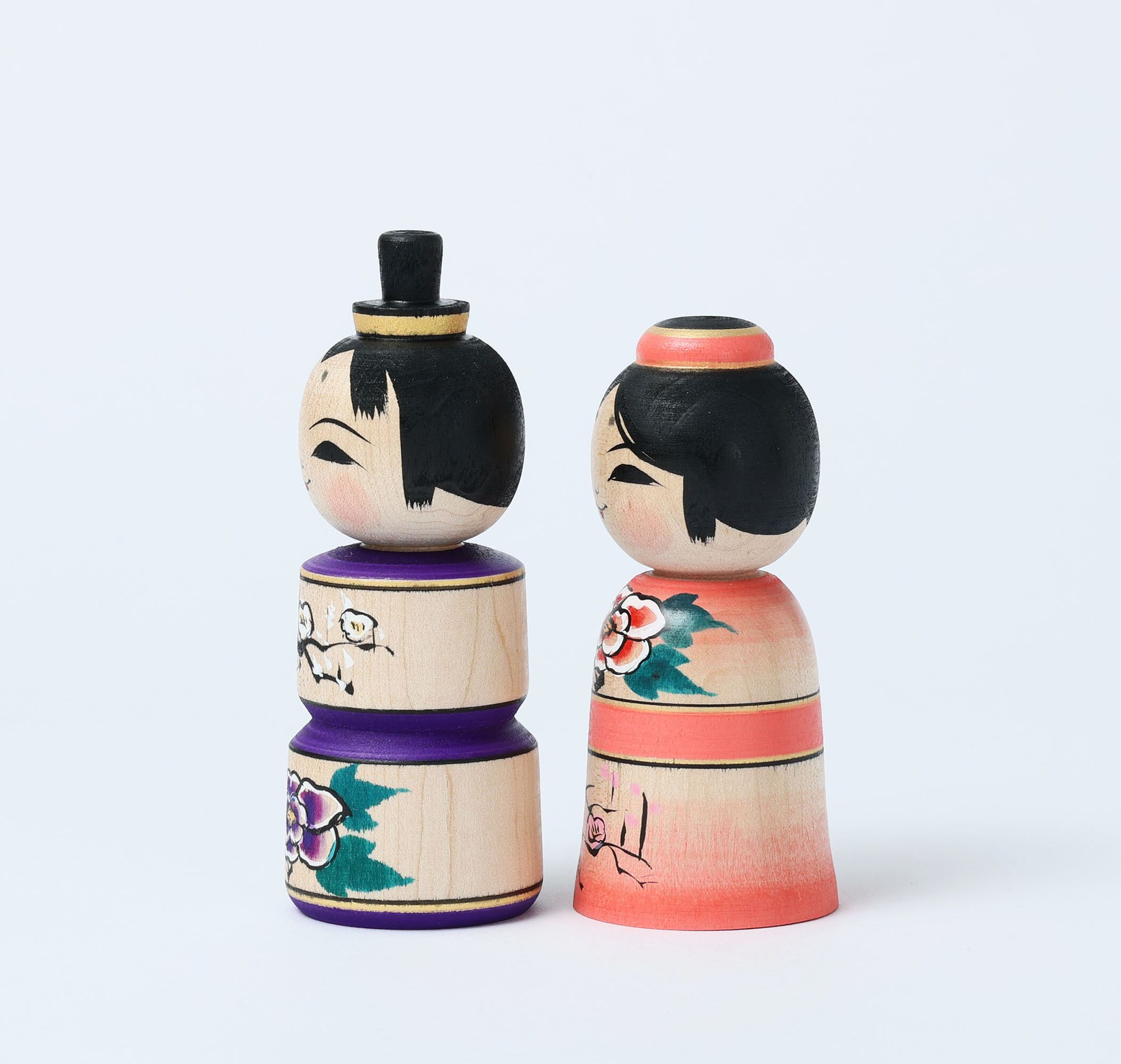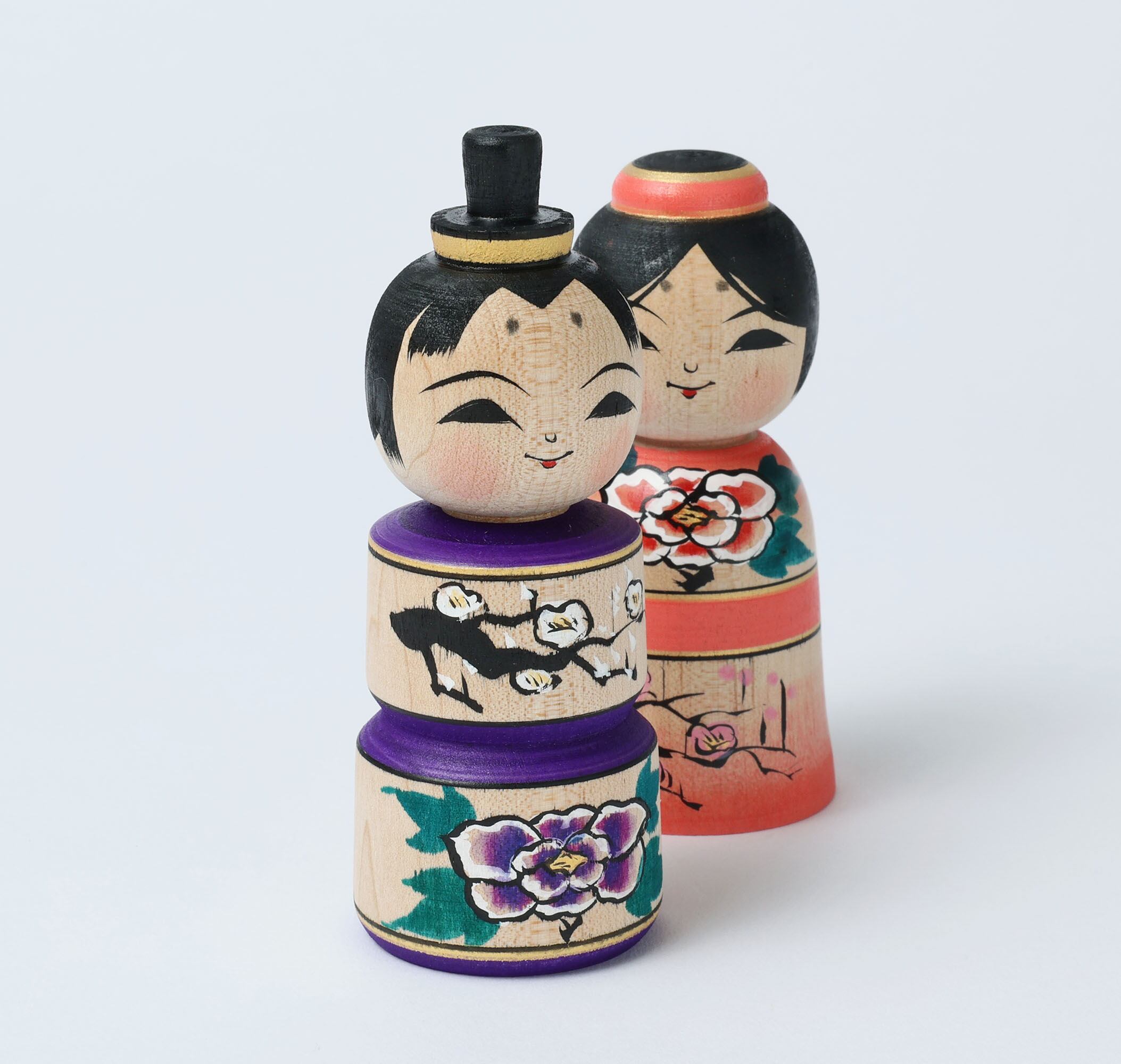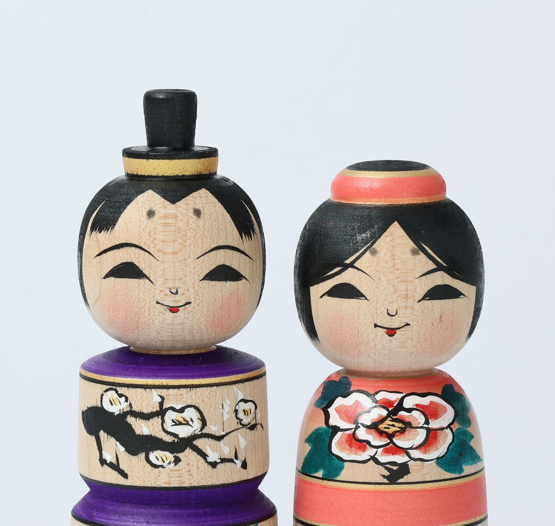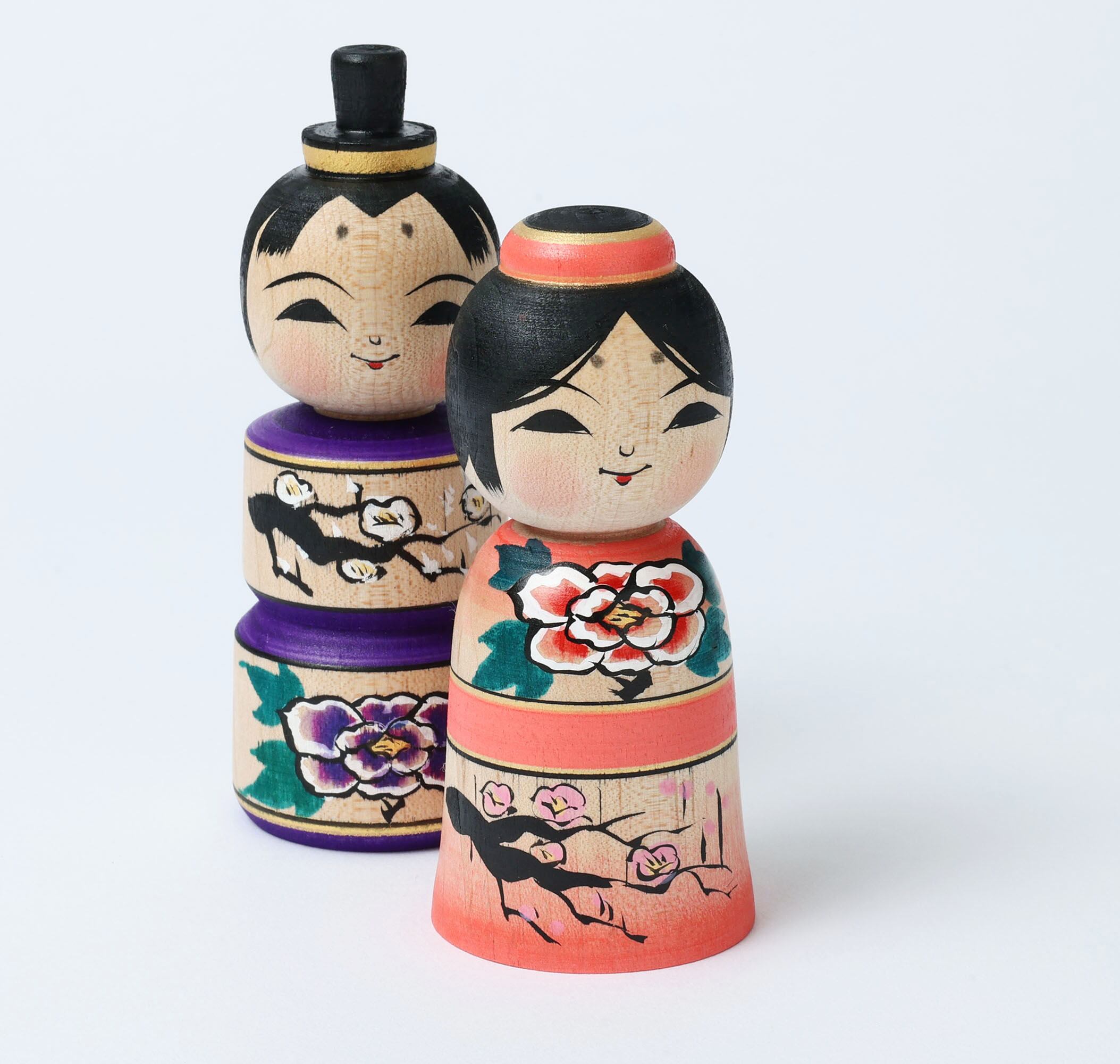津軽系こけし阿保正文工人から届いた雛こけしです。津軽系伝統こけしの牡丹模様や梅の花が描かれた、小柄ながら雅な明るさのお雛こけしです。