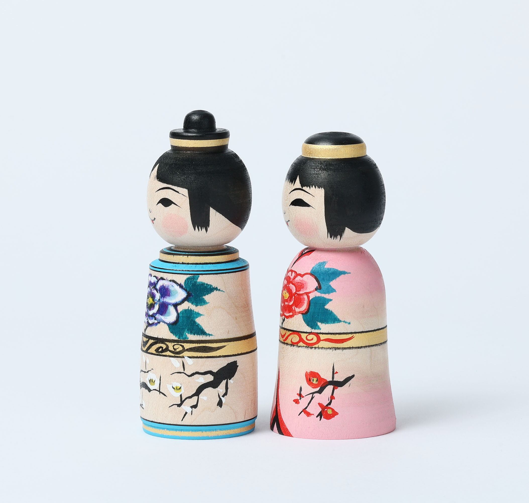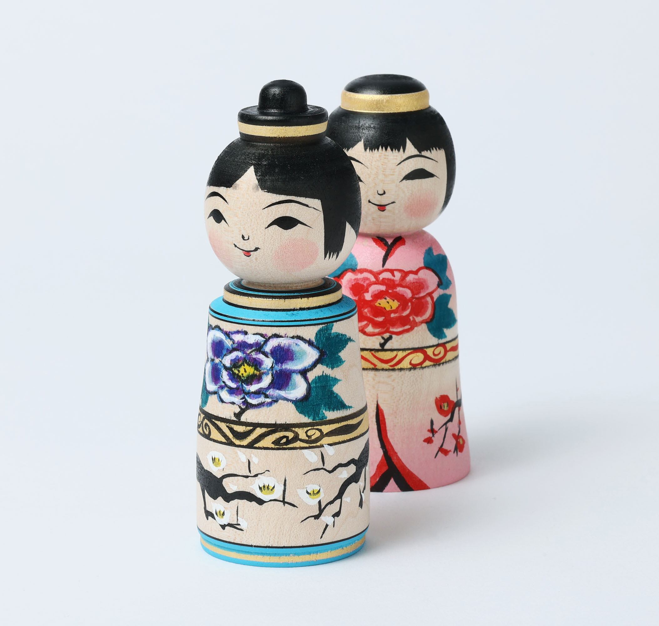 津軽系こけし阿保正文工人から届いた雛こけしです。津軽系伝統こけしの牡丹模様や梅の花が描かれた、小柄ながら雅な明るさのお雛こけしです。