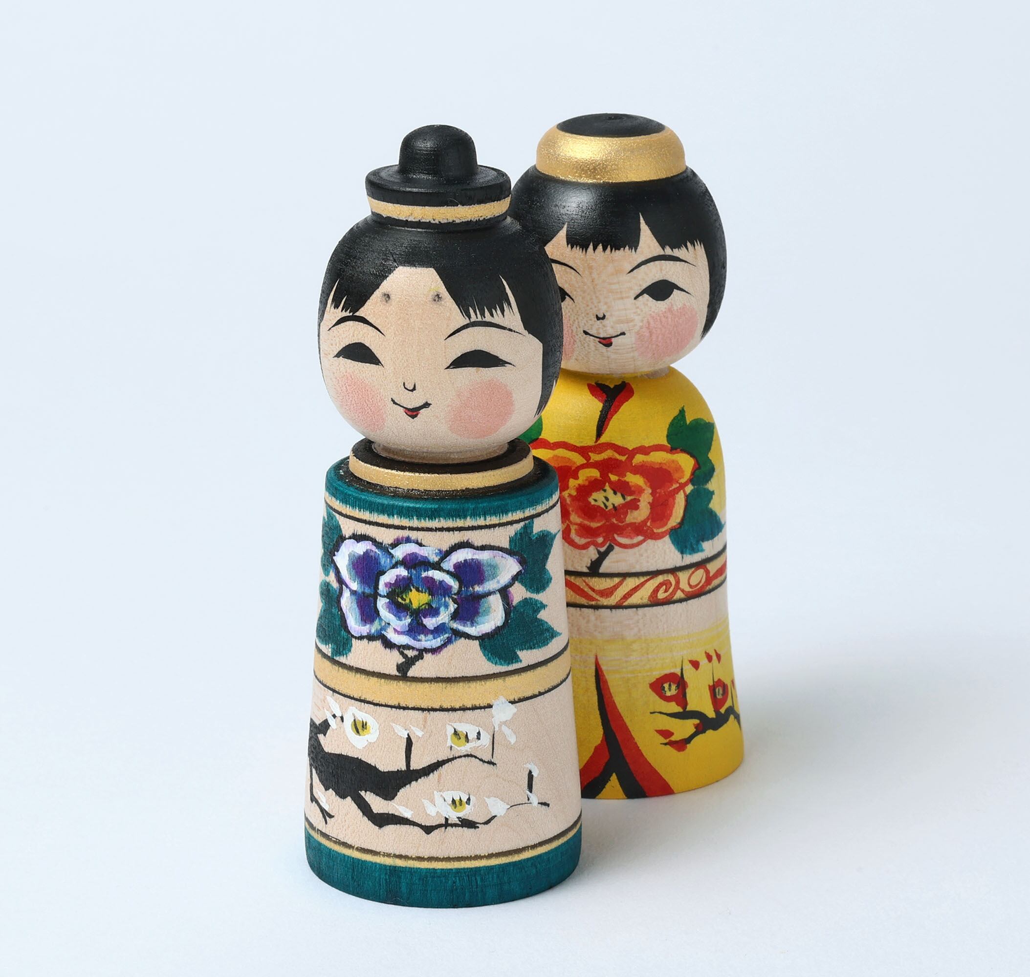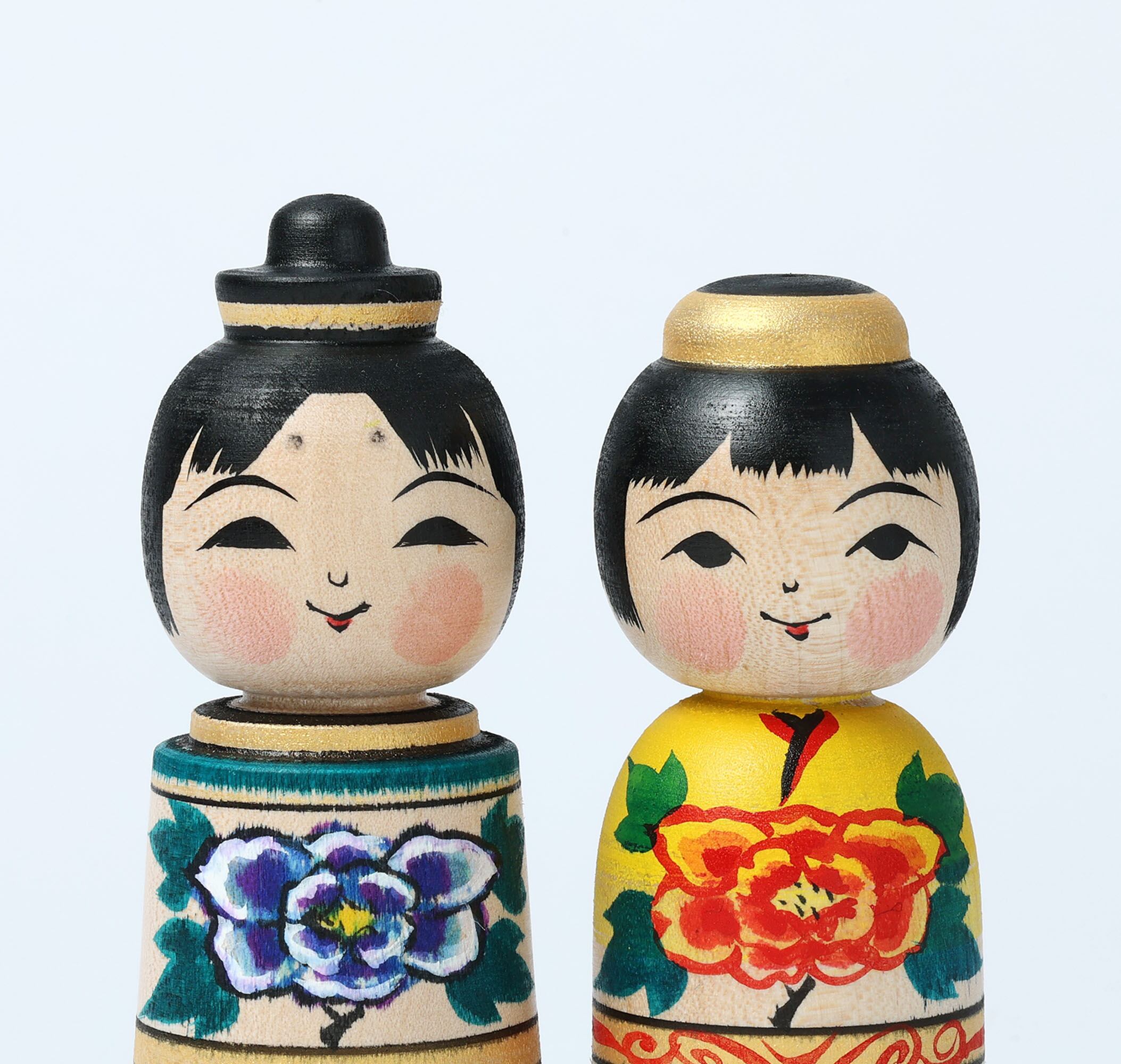 津軽系こけし阿保正文工人から届いた雛こけしです。津軽系伝統こけしの牡丹模様や梅の花が描かれた、小柄ながら雅な明るさのお雛こけしです。
