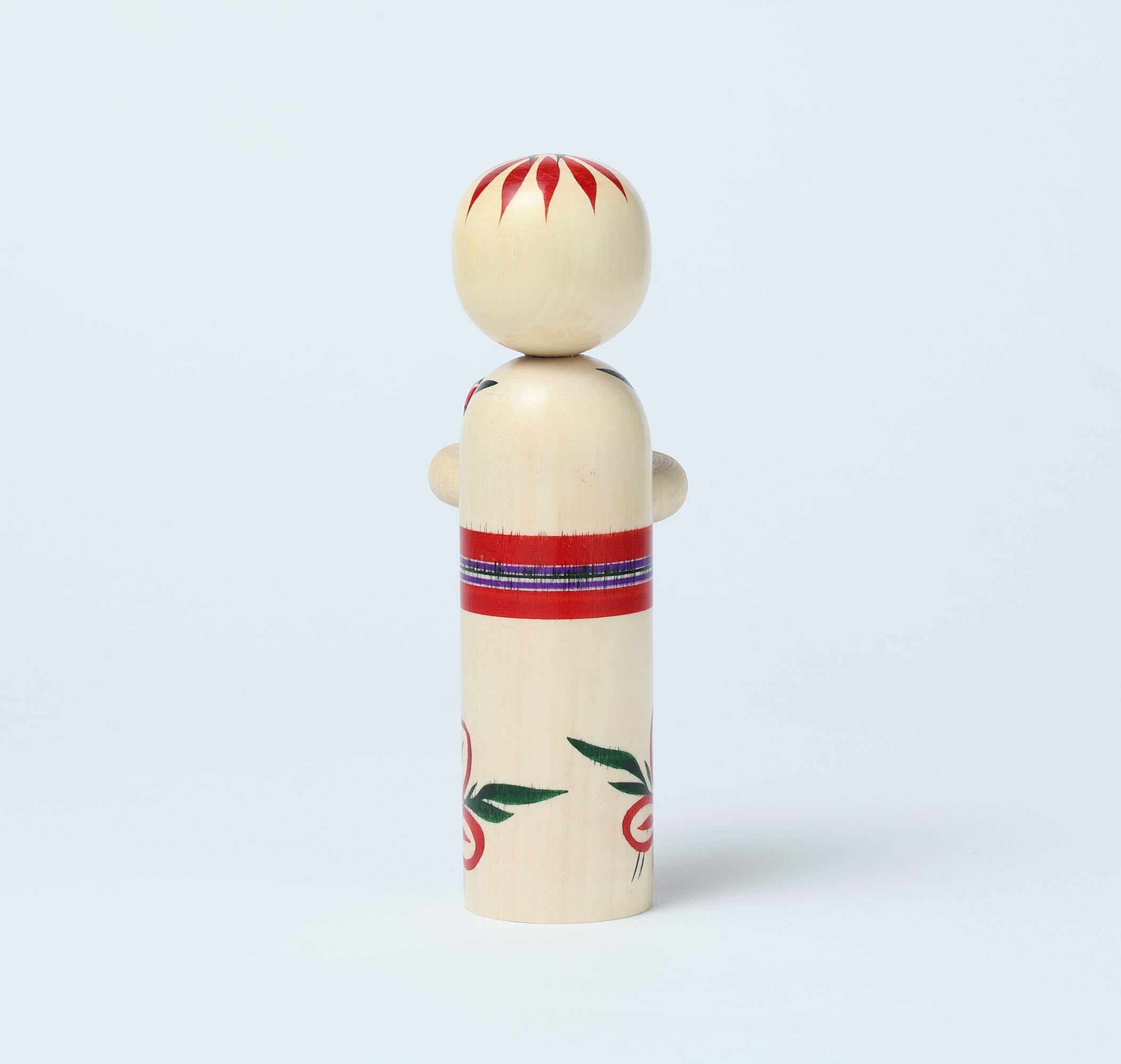 Because it's a baby, mini kokeshi doesn't stand by itself.