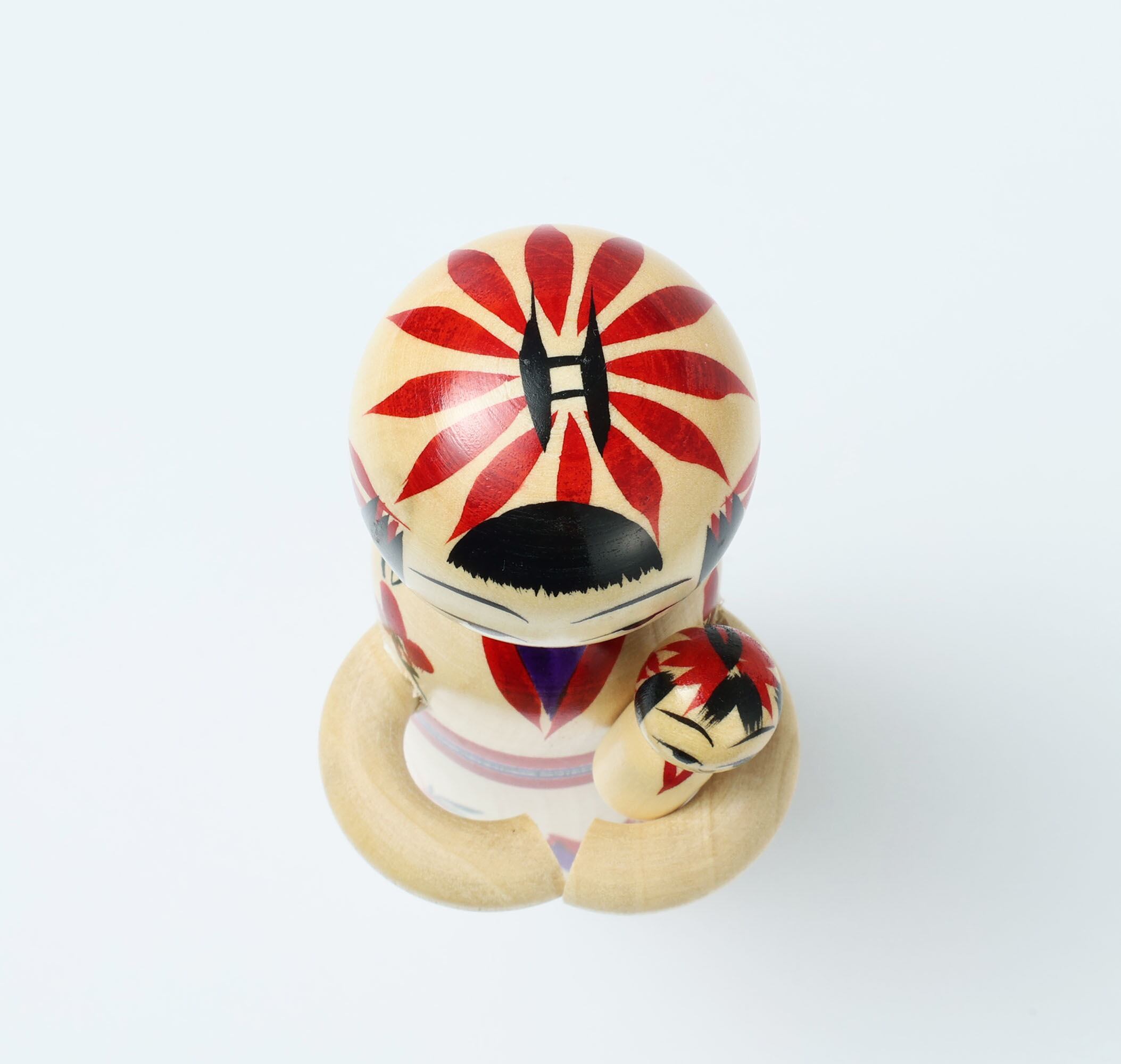 This is a Dakko (holding) kokeshi doll, by KANO Hiroshi who is a Sakunami style kokeshi craftsman.