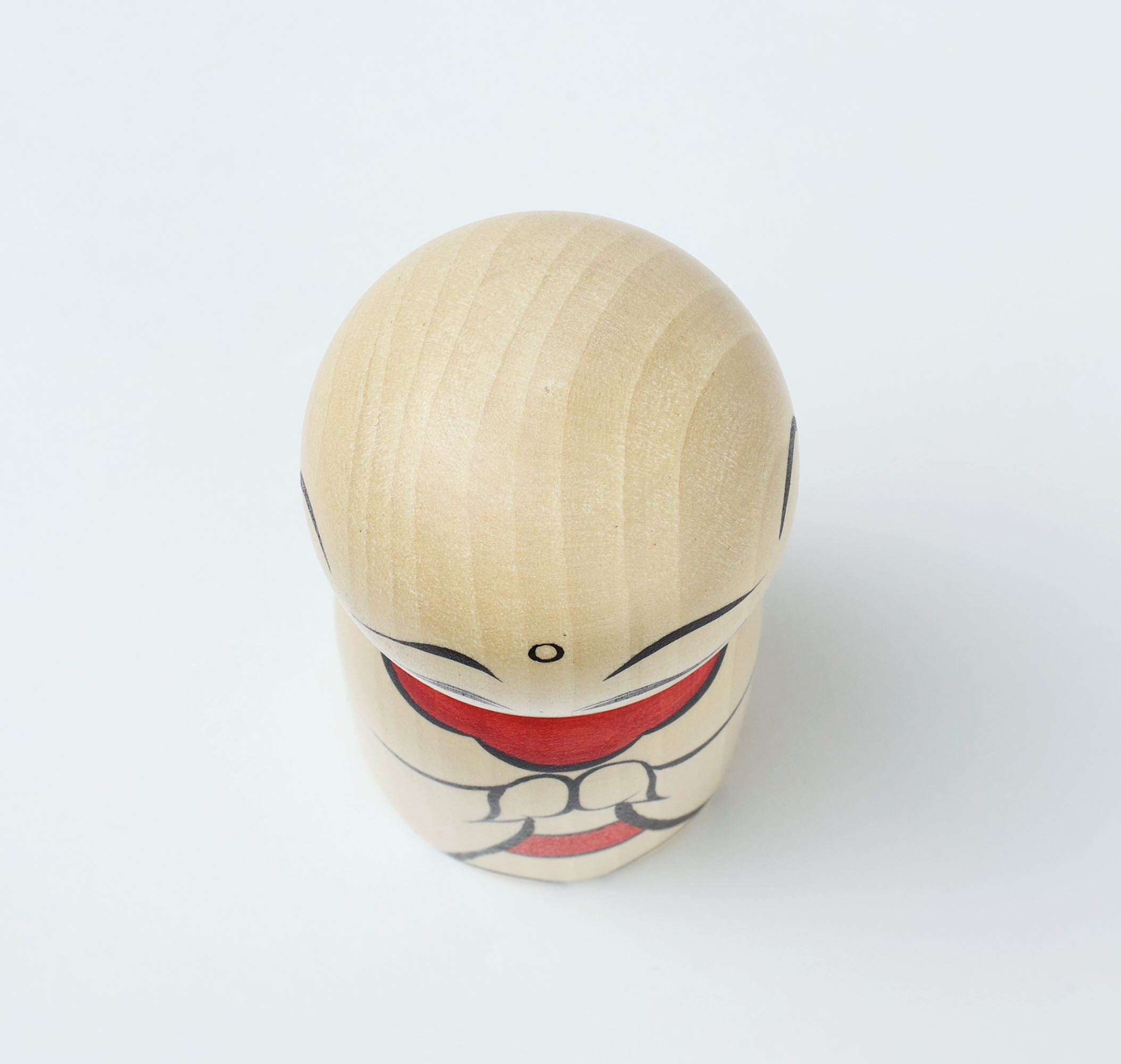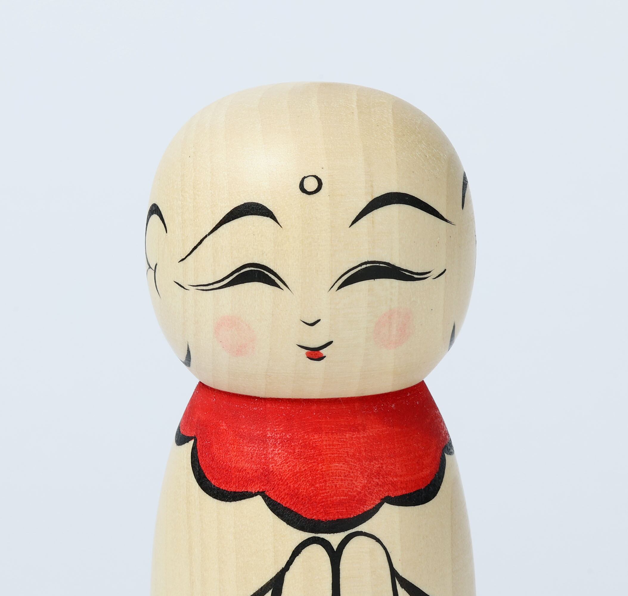 This is an O-jizo-san kokeshi doll, by HIRAGA Teruyuki who is a Sakunami style kokeshi craftsman.