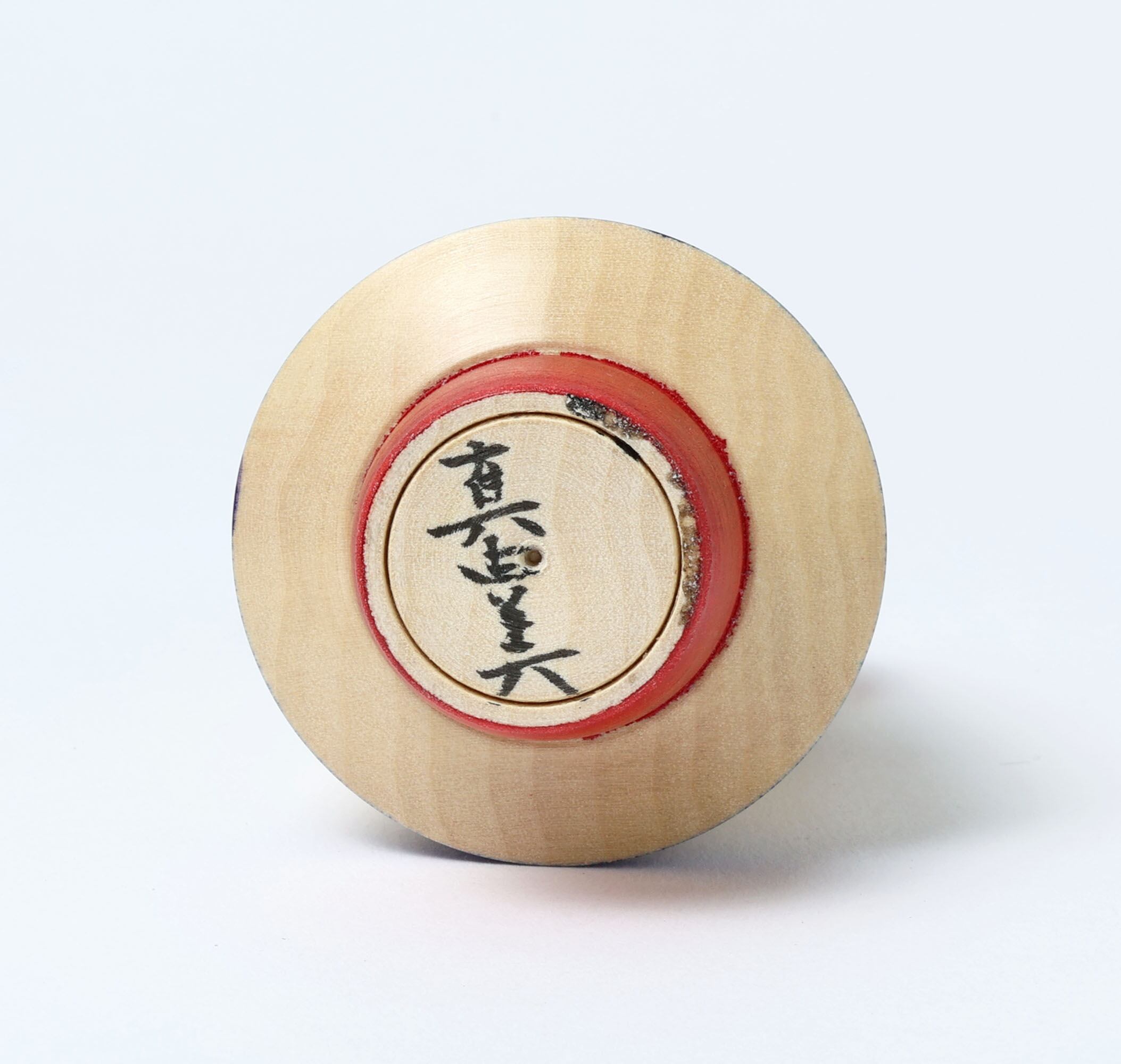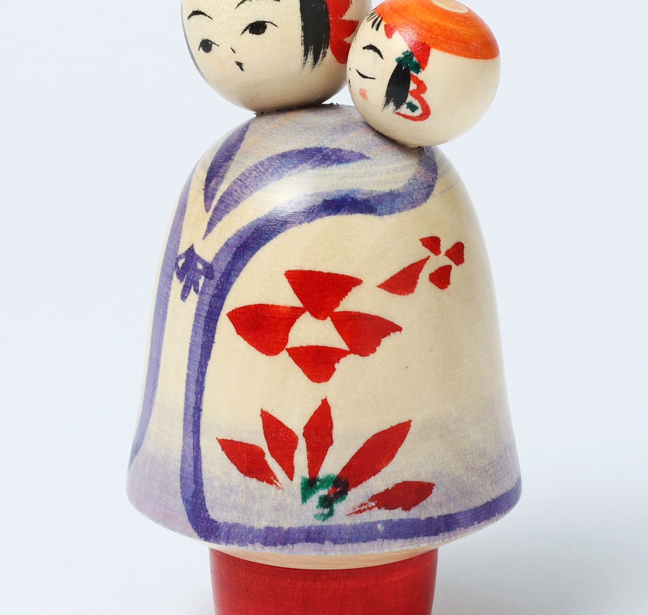 This is a komori-babysitting kokeshi doll, by NIIYAMA Mayumi who is a Yajiro style kokeshi craftsperson.