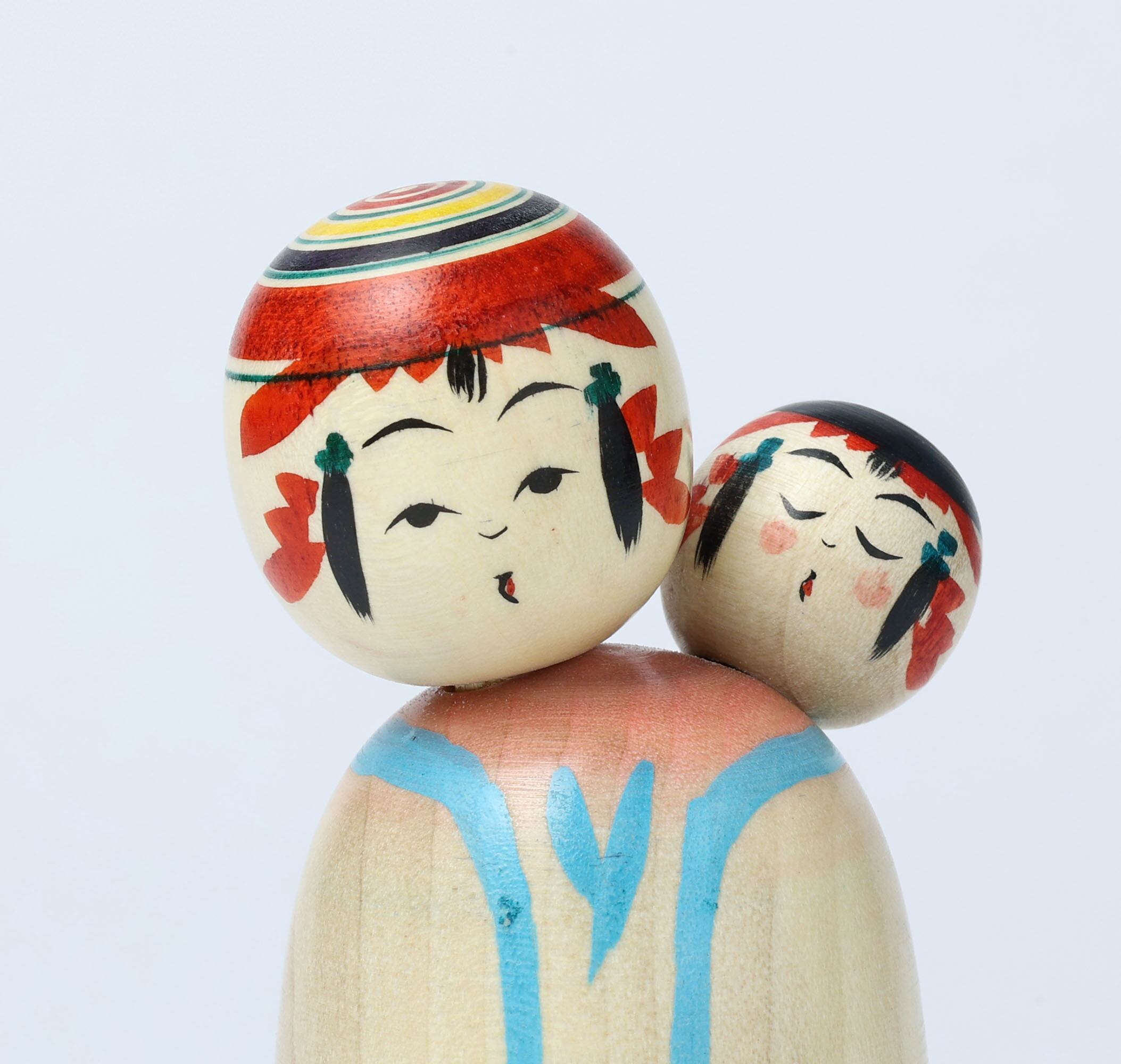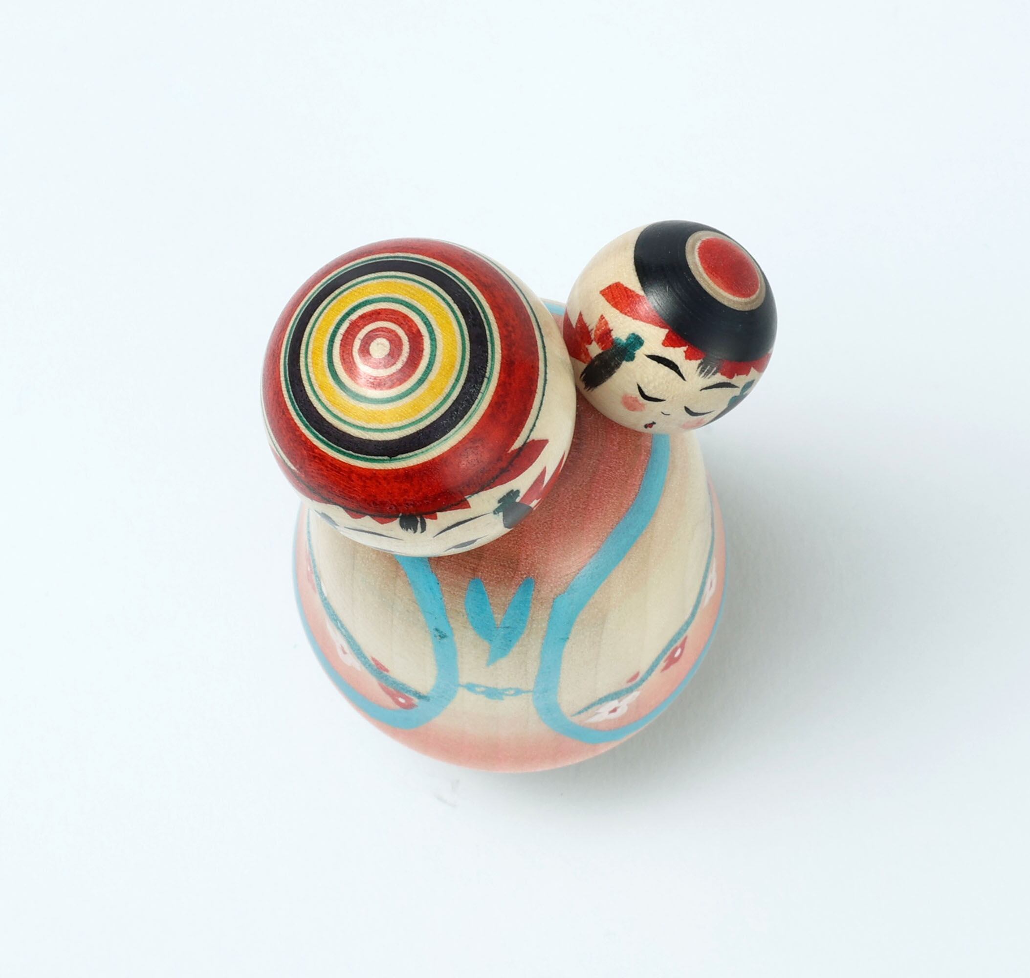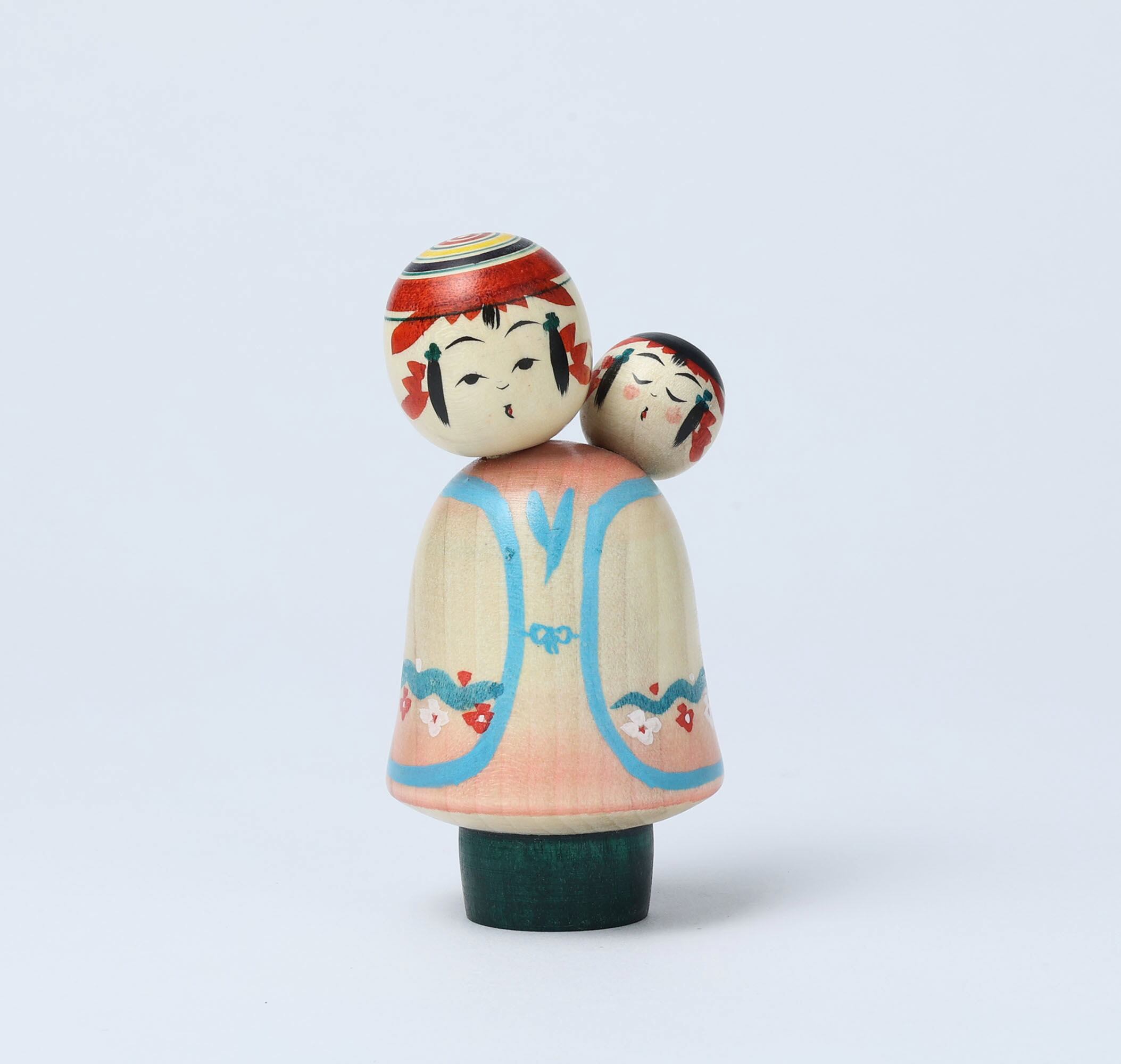 The sleeping baby kokeshi on her babysitter, makes us calm and peaceful.