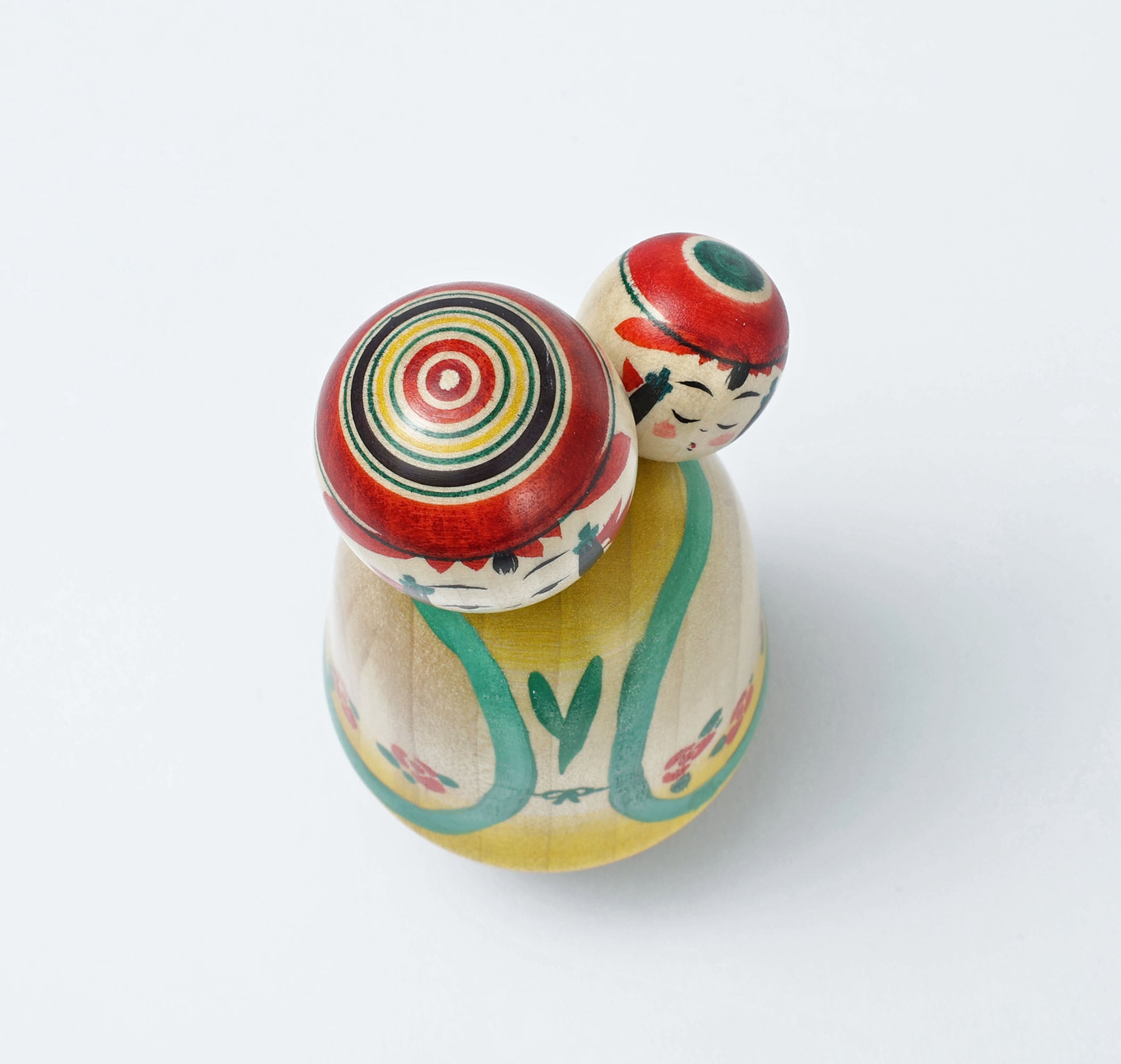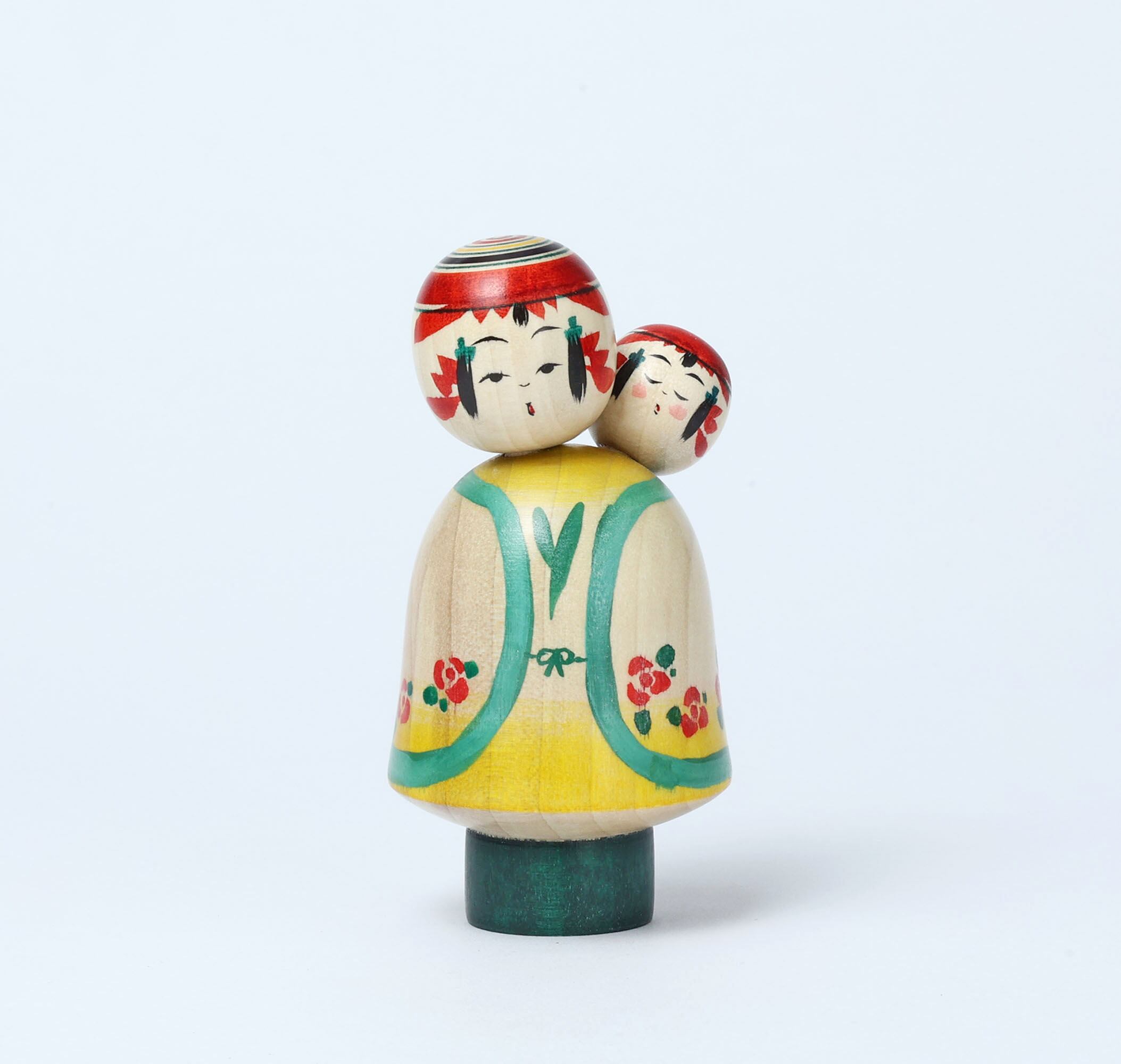 The sleeping baby kokeshi on her babysitter, makes us calm and peaceful.