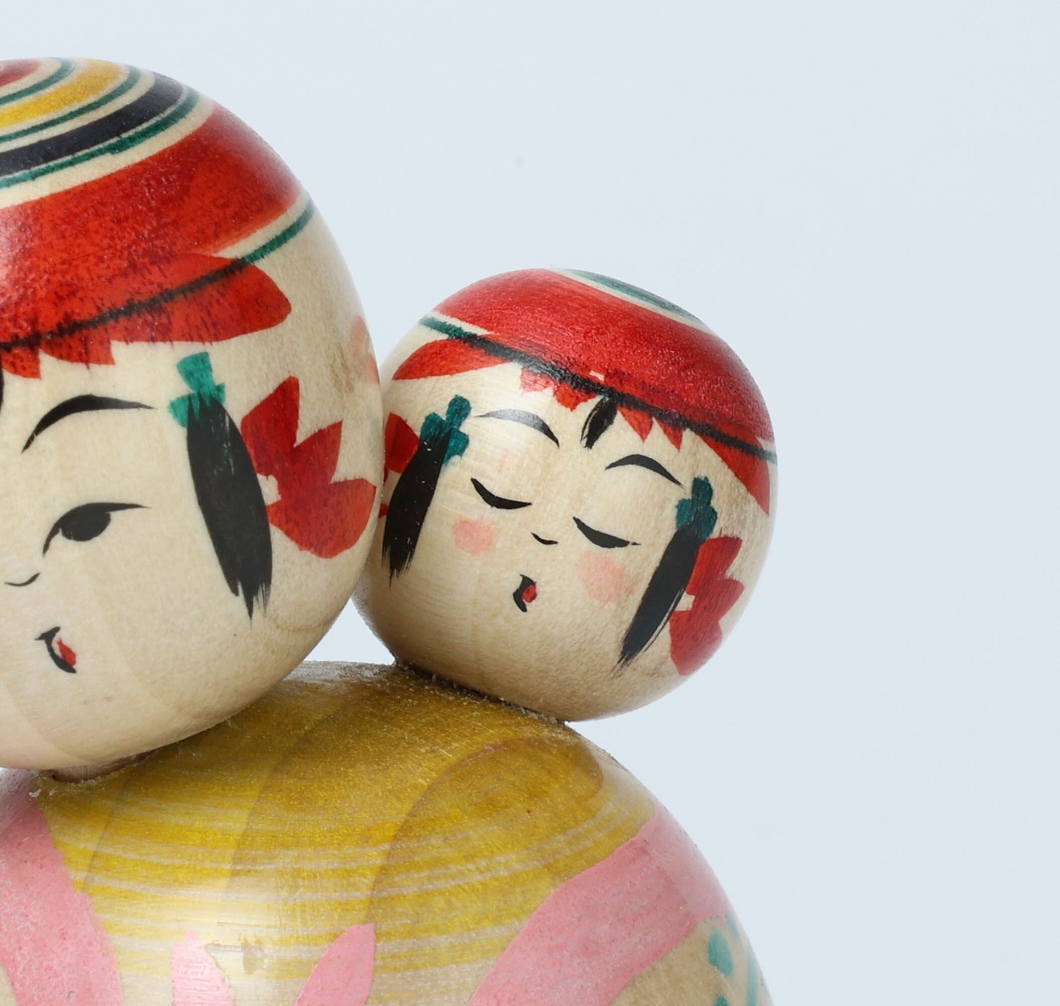 The sleeping baby kokeshi on her babysitter, makes us calm and peaceful.