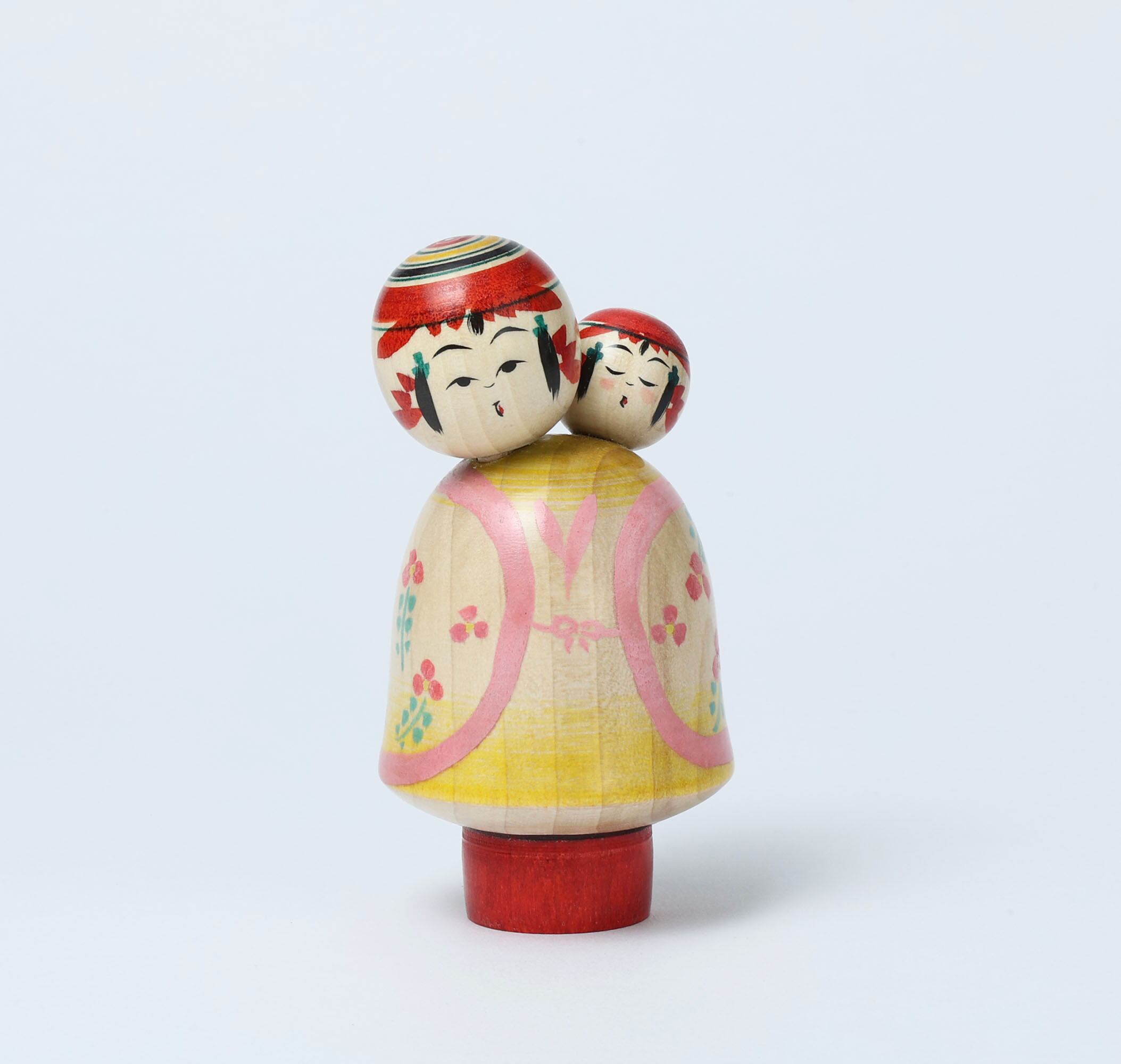 This is a babysitting kokeshi doll, by IKEUCHI Shione who is a Yajiro style kokeshi craftsperson.