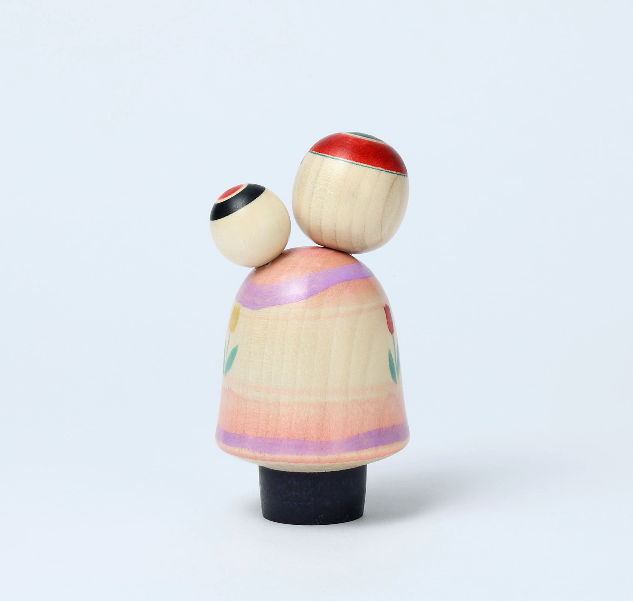 The sleeping baby kokeshi on her babysitter, makes us calm and peaceful.