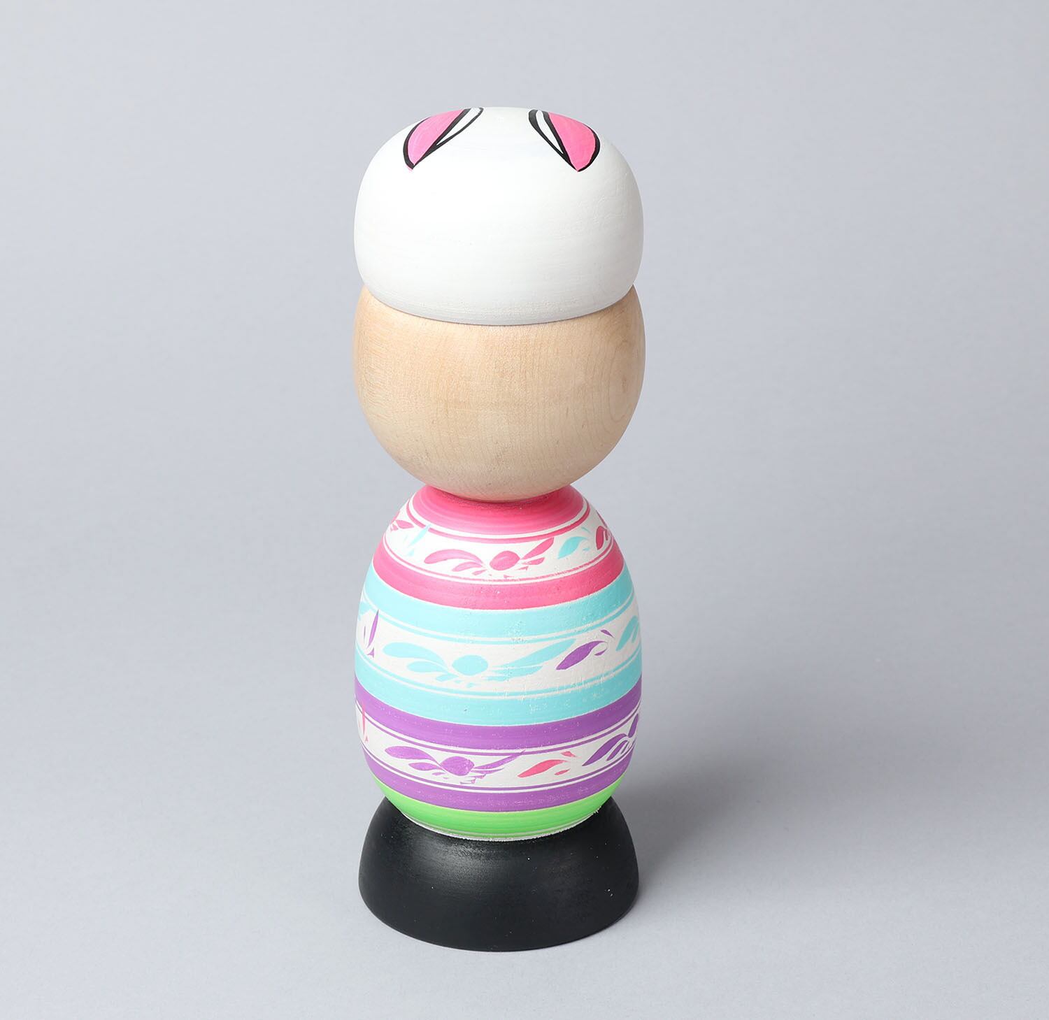 イースターをテーマに作られたこのこけしは、頭がうさぎで、胴がたまごです。