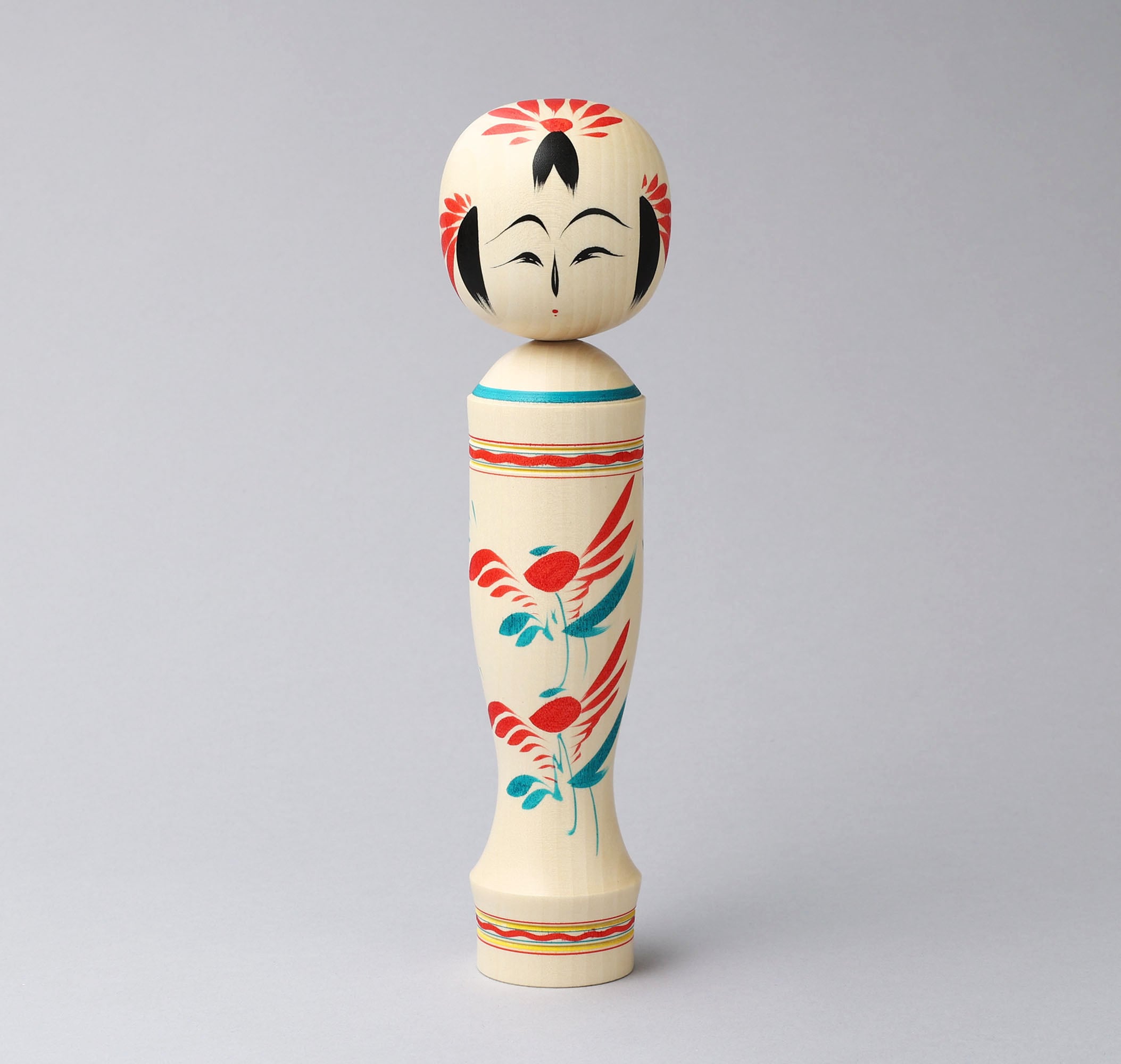 There are 12 styles of traditional kokeshi dolls in the northern part of Tohoku, Japan. Each style has specific elements, which like the facial expression, body shape, patterns and so on.