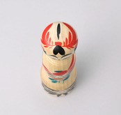 This is a kokeshi doll, which is standing on a Daruma, by Teruyuki HIRAGA who is a Sakunami style kokeshi craftsman in Tohoku, Japan.