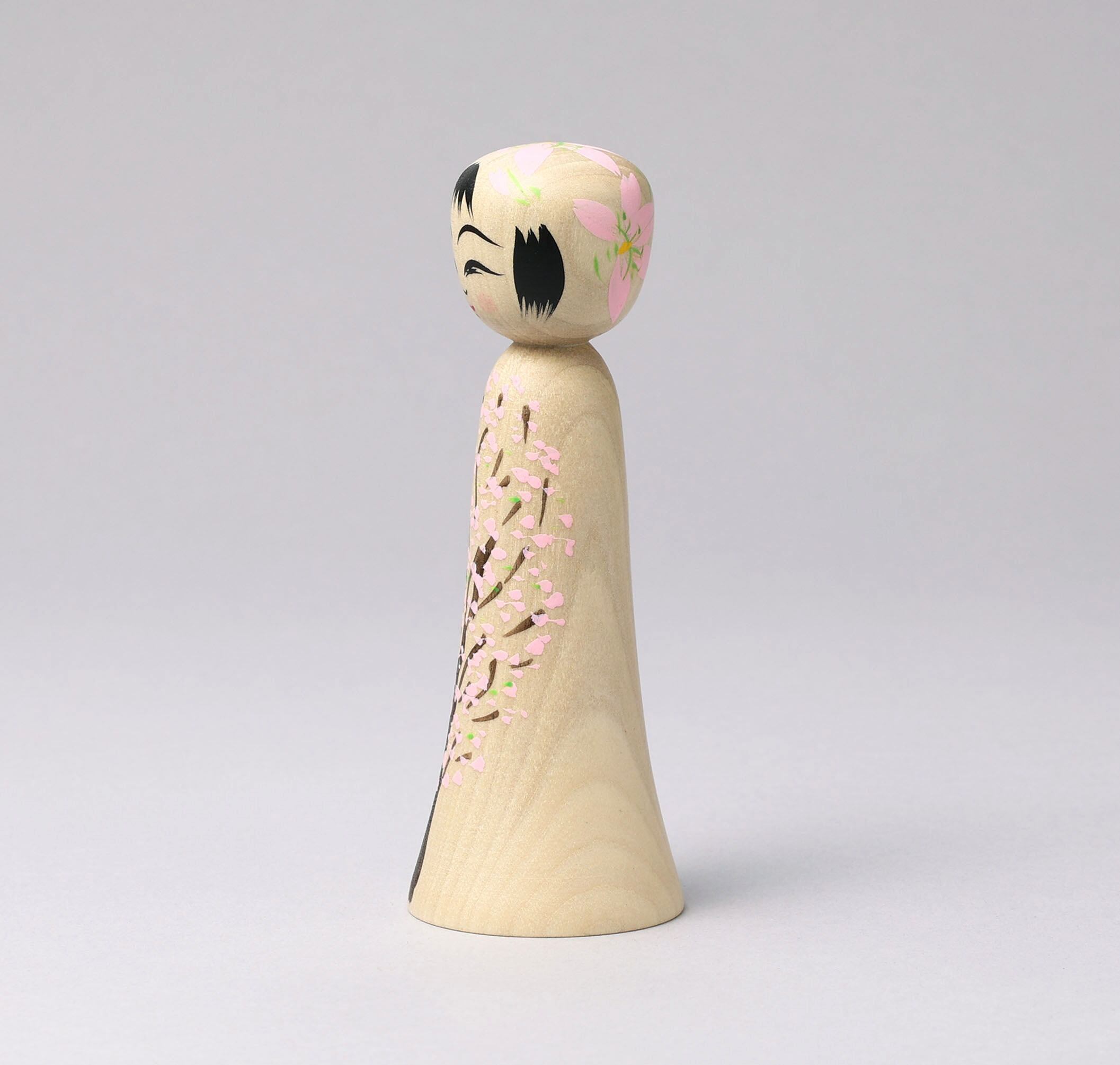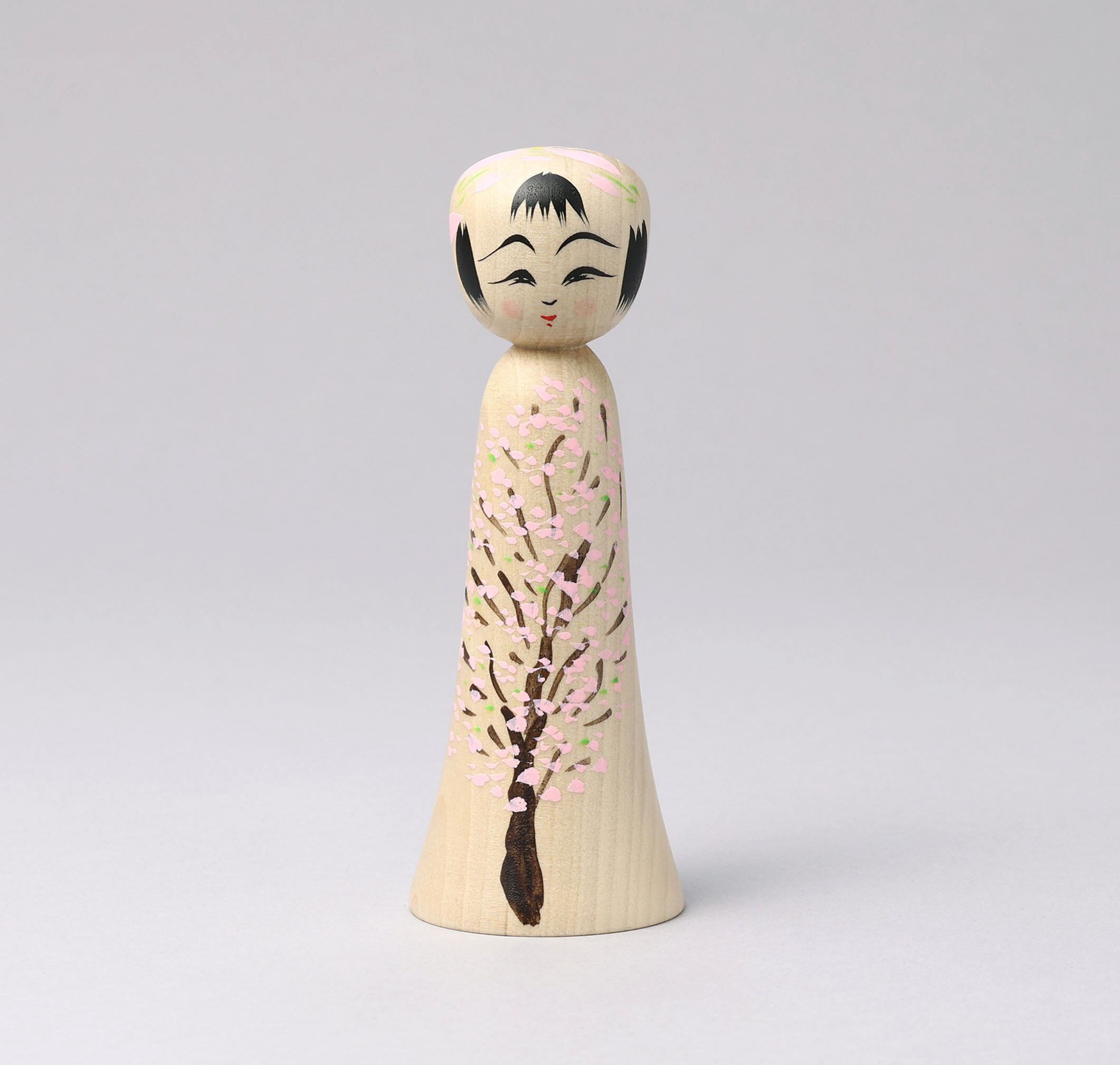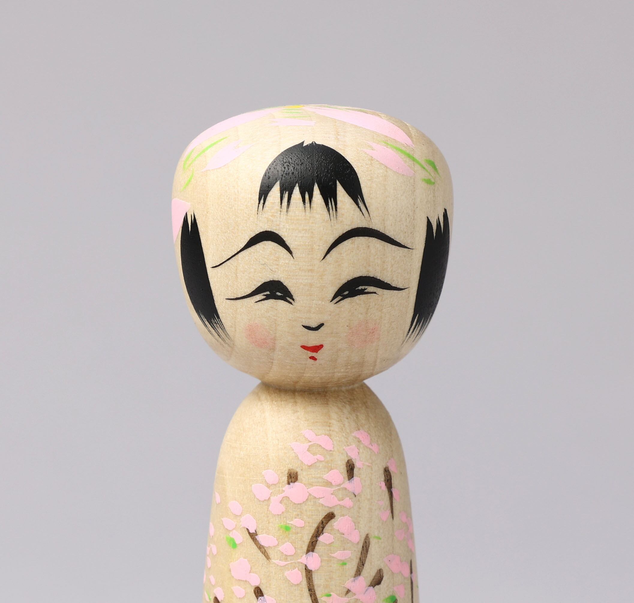 This is a sakura-cherry blossom kokeshi doll, by Teruyuki HIRAGA who is a Sakunami style kokeshi craftsman in Tohoku, Japan.